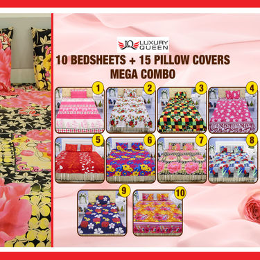 10 Bedsheet Sets + 15 Pillow Covers Mega Combo (5DSBS1)
