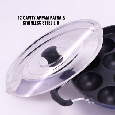 12 Cavity Nonstick Appam Patra with Lid + Stainless Steel Medu Vada Maker + Free Mini Coconut Scraper (1AP1MW4)