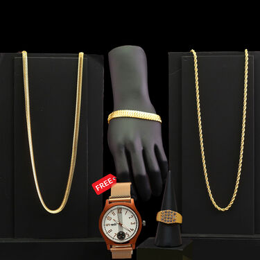 2 Golden Chain + Bracelet + Ring + Free Watch (2GCBRW13)